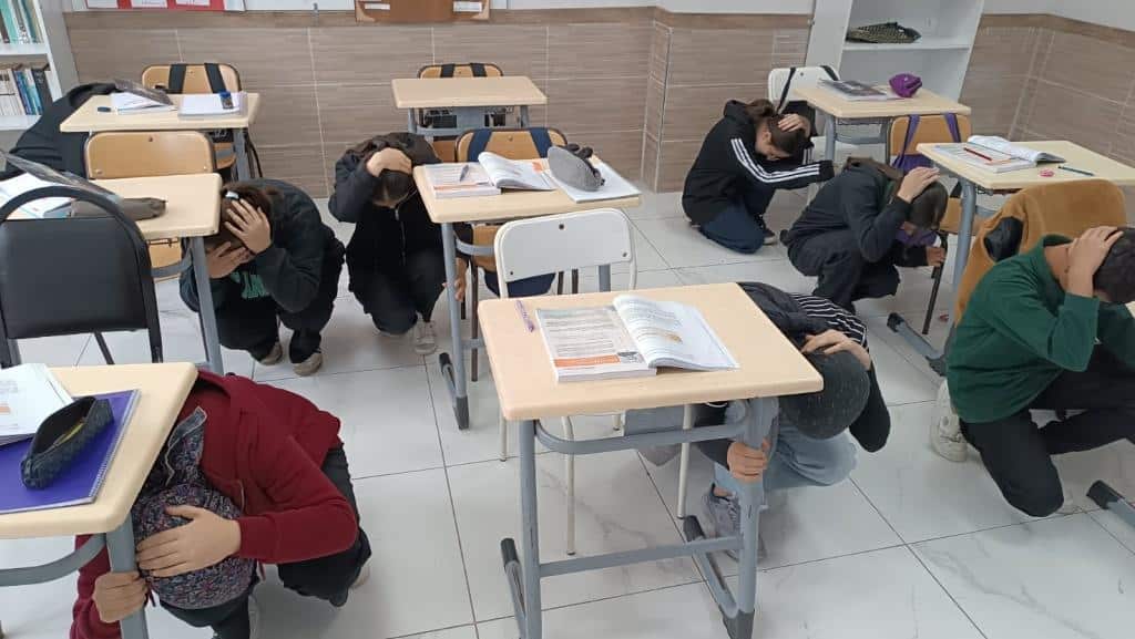 kulumuzda, öğrencilerimizin ve personelimizin olası bir deprem durumunda nasıl davranmaları gerektiğini öğrenmeleri amacıyla deprem tatbikatı gerçekleştirildi.